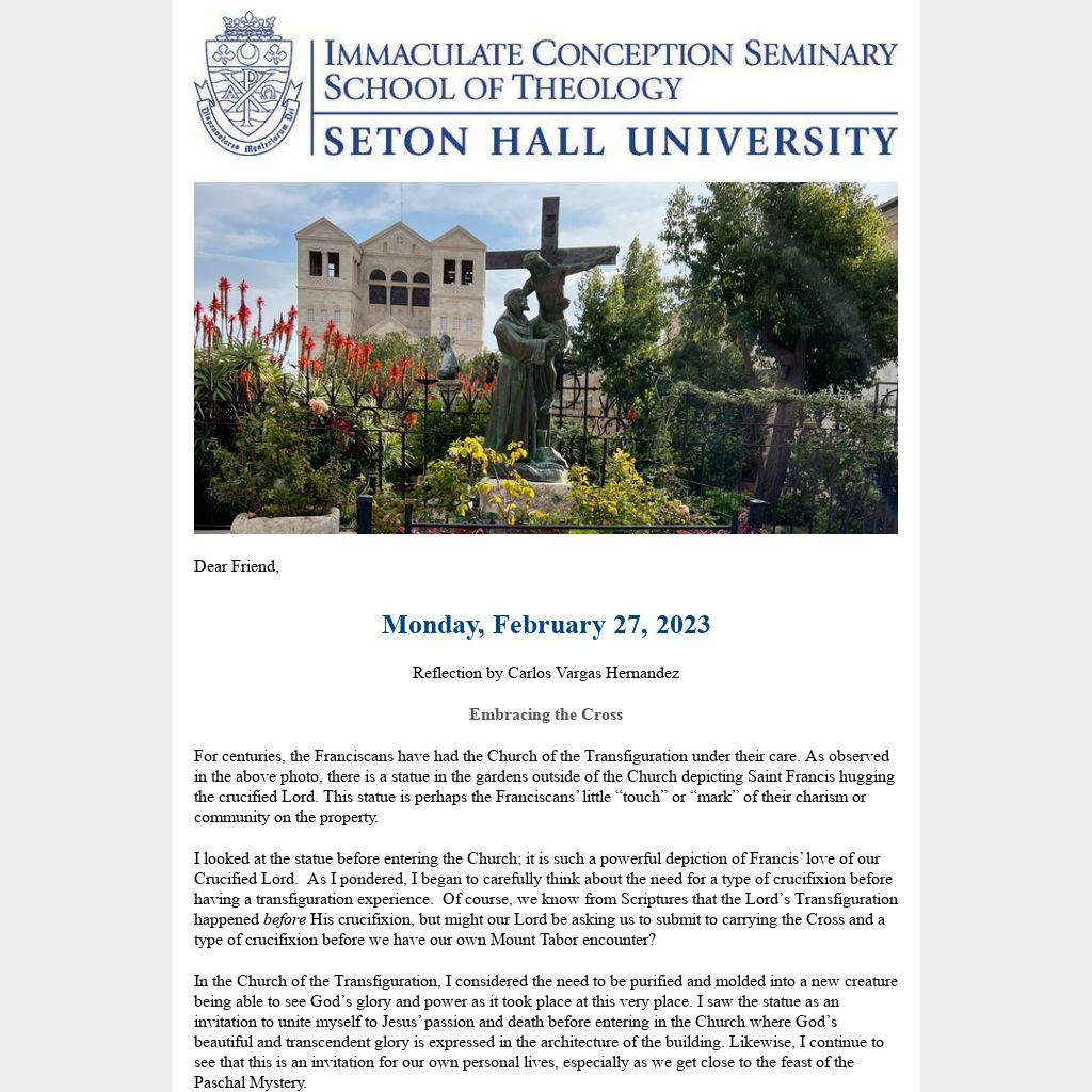 Every Lent, the Church invites us to prepare our own purification—both in body and soul by prayer, fasting, and almsgiving— to worthily celebrate the Holy Triduum. The commemoration of Jesus’ passion, death, and resurrection is not merely a remembrance but a mystery by which we, too, can unite ourselves to our Crucified Lord so to be resurrected with Him on Easter to a new Life in Him. Similar to St. Francis, we must embrace Jesus and His cross because there cannot be an Easter Sunday without a Good Friday. And there cannot be Redemption without the crucifixion.