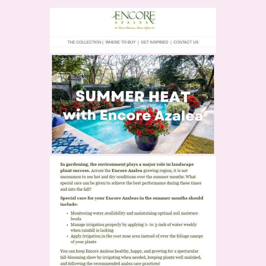 Special care for your Encore Azaleas in the summer months should include: