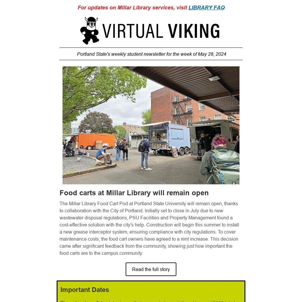 Virtual Viking is Portland State University's student newsletter, published weekly by University Communications. To submit a news item or event, email virtualv@pdx.edu.