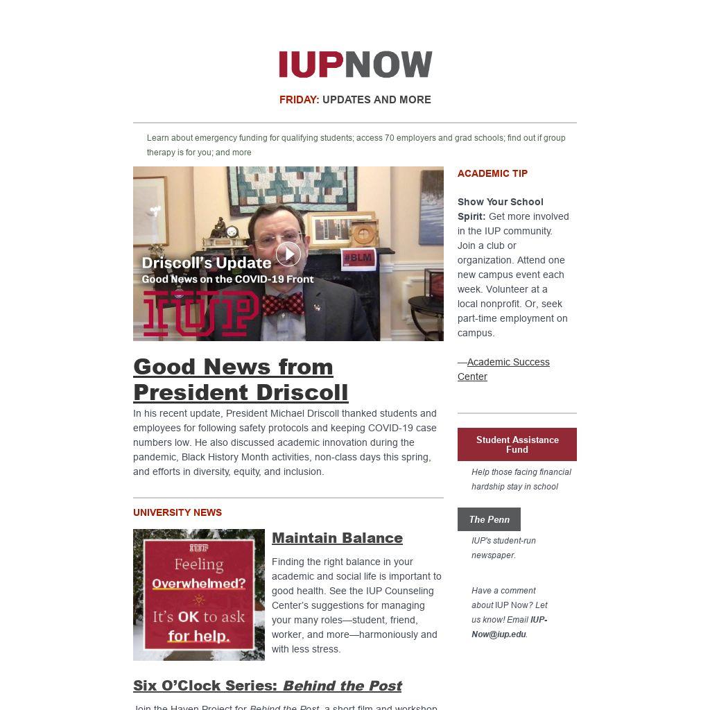 In his recent update, President Michael Driscoll thanked students and employees for following safety protocols and keeping COVID-19 case numbers low. He also discussed academic innovation during the pandemic, Black History Month activities, non-class days this spring, and efforts in diversity, equity, and inclusion.