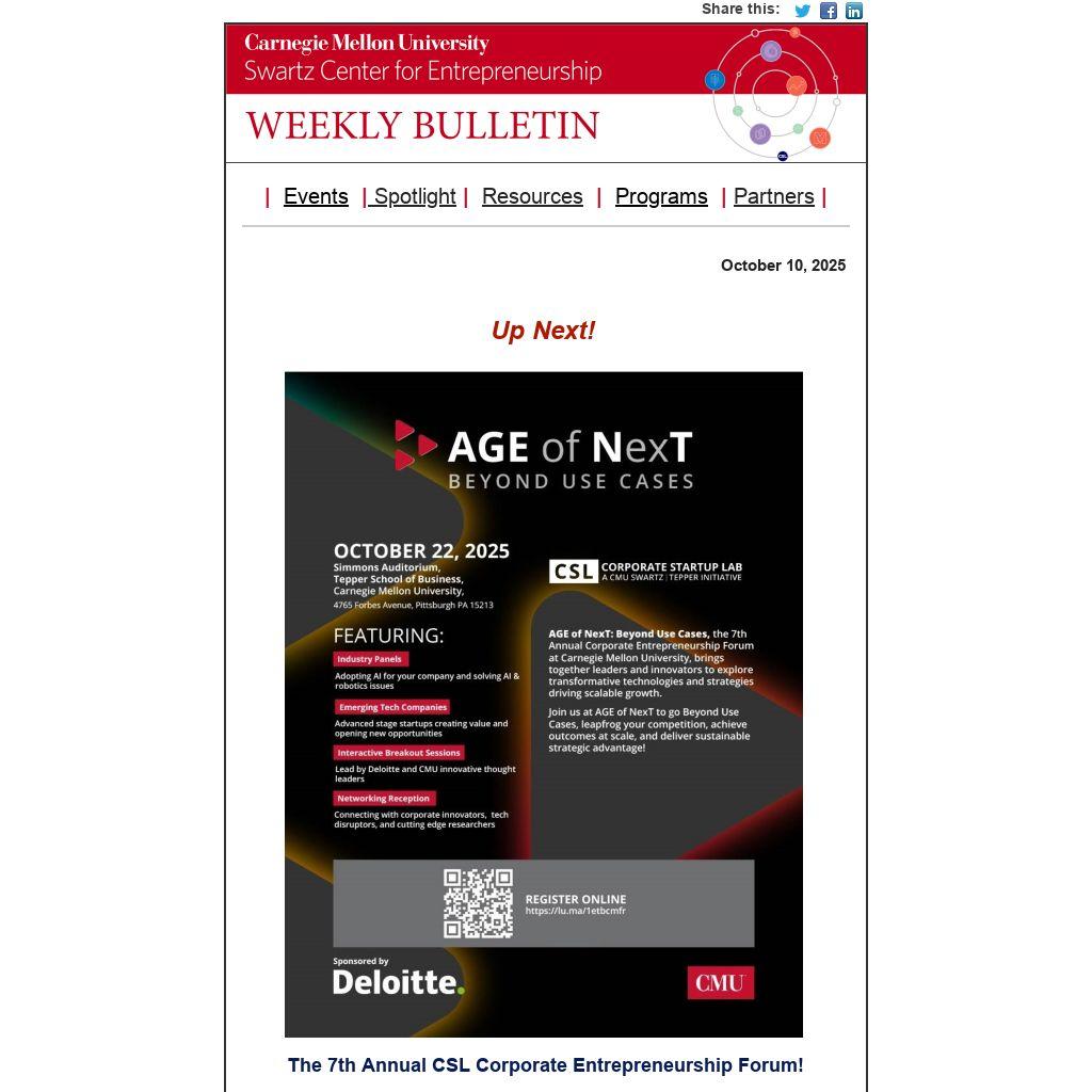 Join us for the 7th annual CSL Entrepreneurship Forum on October 22, 'Age of NexT: Beyond Use Cases, bringing together leaders and innovators to explore transformative technologies and strategies driving scalable growth!