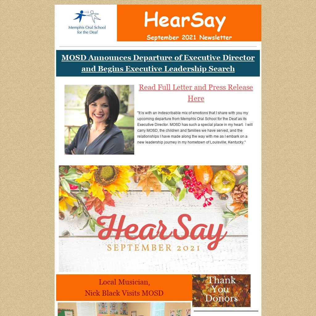 "It is with an indescribable mix of emotions that I share with you my upcoming departure from Memphis Oral School for the Deaf as its Executive Director. MOSD has such a special place in my heart. I will carry MOSD, the children and families we have served, and the relationships I have made along the way with me as I embark on a new leadership journey in my hometown of Louisville, Kentucky."
