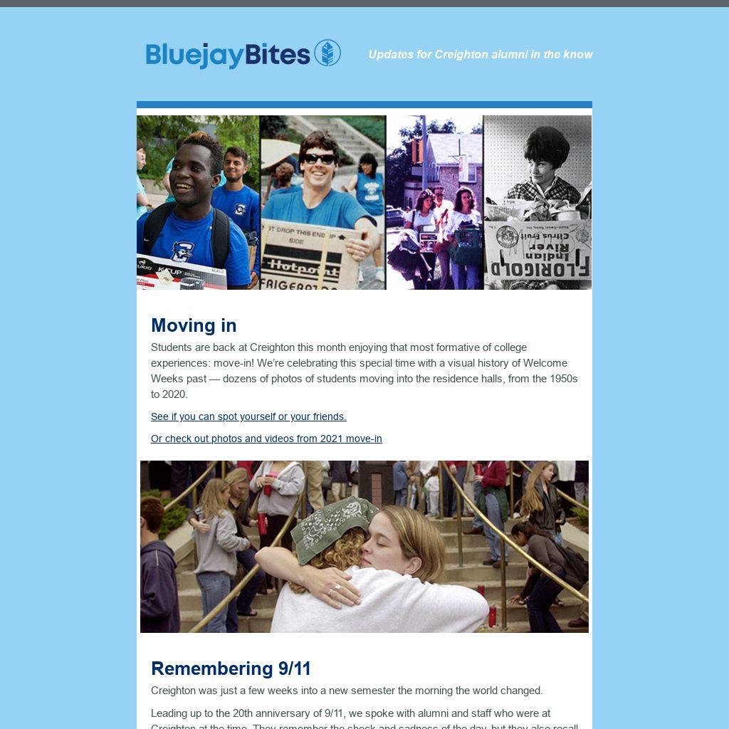 Leading up to the 20th anniversary of 9/11, we spoke with alumni and staff who were at Creighton at the time. They remember the shock and sadness of the day, but they also recall a campus community coming together in the face of crisis.