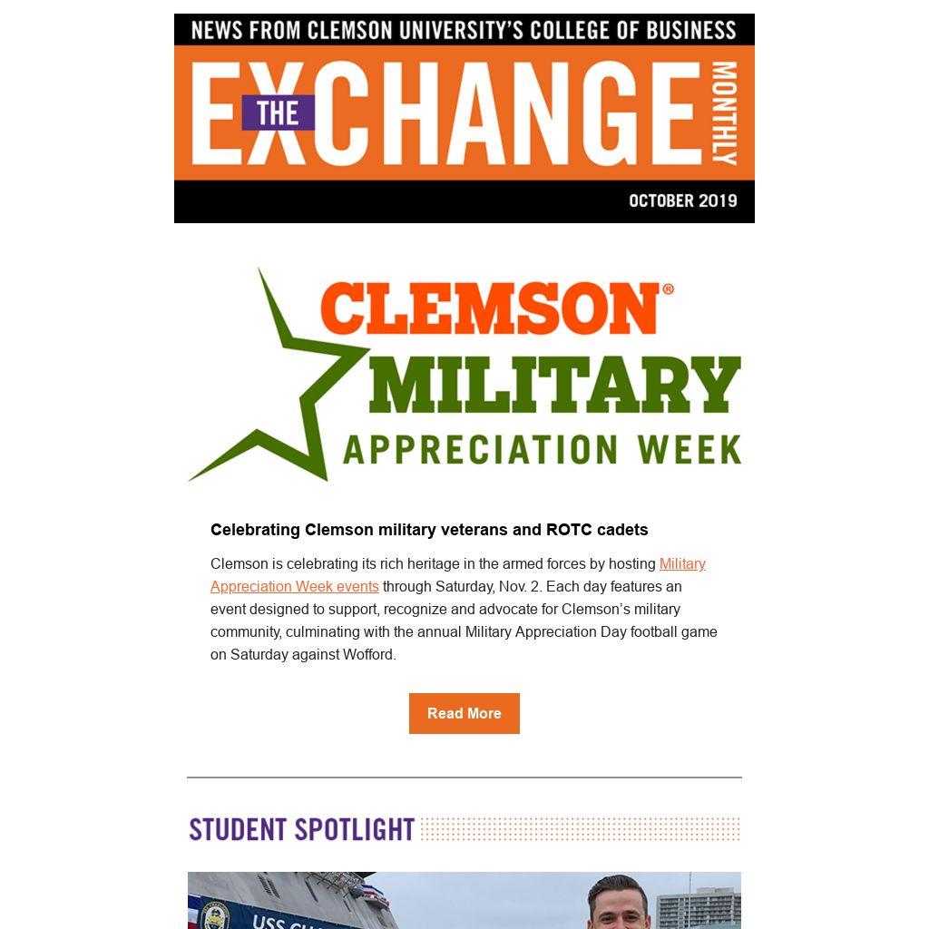 Clemson is celebrating its rich heritage in the armed forces by hosting Military Appreciation Week events through Saturday, Nov. 2. Each day features an event designed to support, recognize and advocate for Clemson’s military community, culminating with the annual Military Appreciation Day football game on Saturday against Wofford.