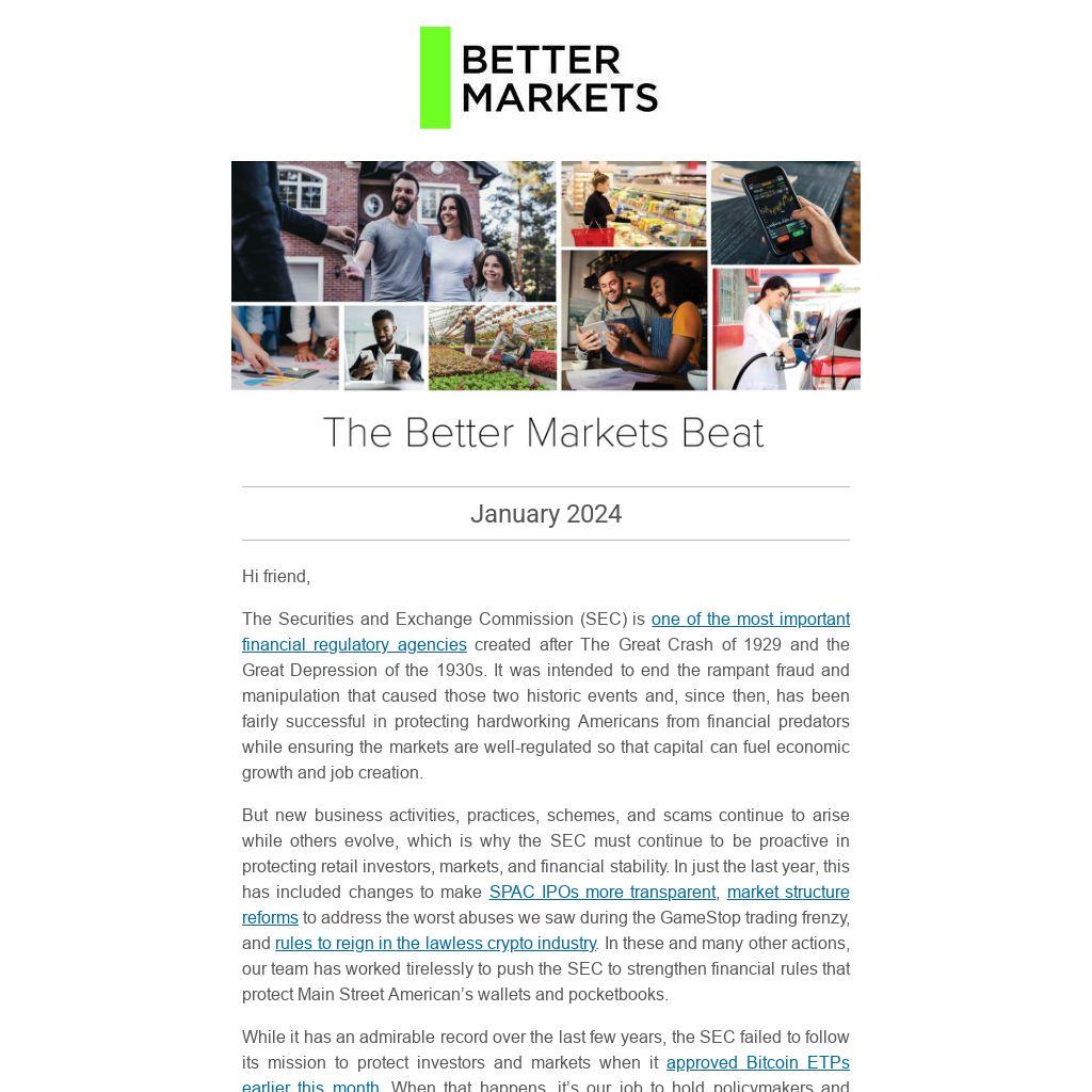 The SEC’s decision is a stark reminder that special interests -- whether they be the money-soaked crypto lobby, the powerful megabanks on Wall Street, or the financial titans of high frequency trading -- are relentlessly trying to influence the policymaking process, and push their priorities above those of the American people. That’s why it’s vital to have substantive experts like Better Markets to be a counterweight to those special interests.