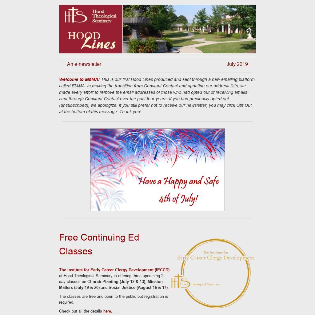 Welcome to EMMA! This is our first Hood Lines produced and sent through a new emailing platform called EMMA. In making the transition from Constant Contact and updating our address lists, we made every effort to remove the email addresses of those who had opted out of receiving emails sent through Constant Contact over the past four years. If you had previously opted out (unsubscribed), we apologize. If you still prefer not to receive our newsletter, you may click Opt Out at the bottom of this message. Thank you!