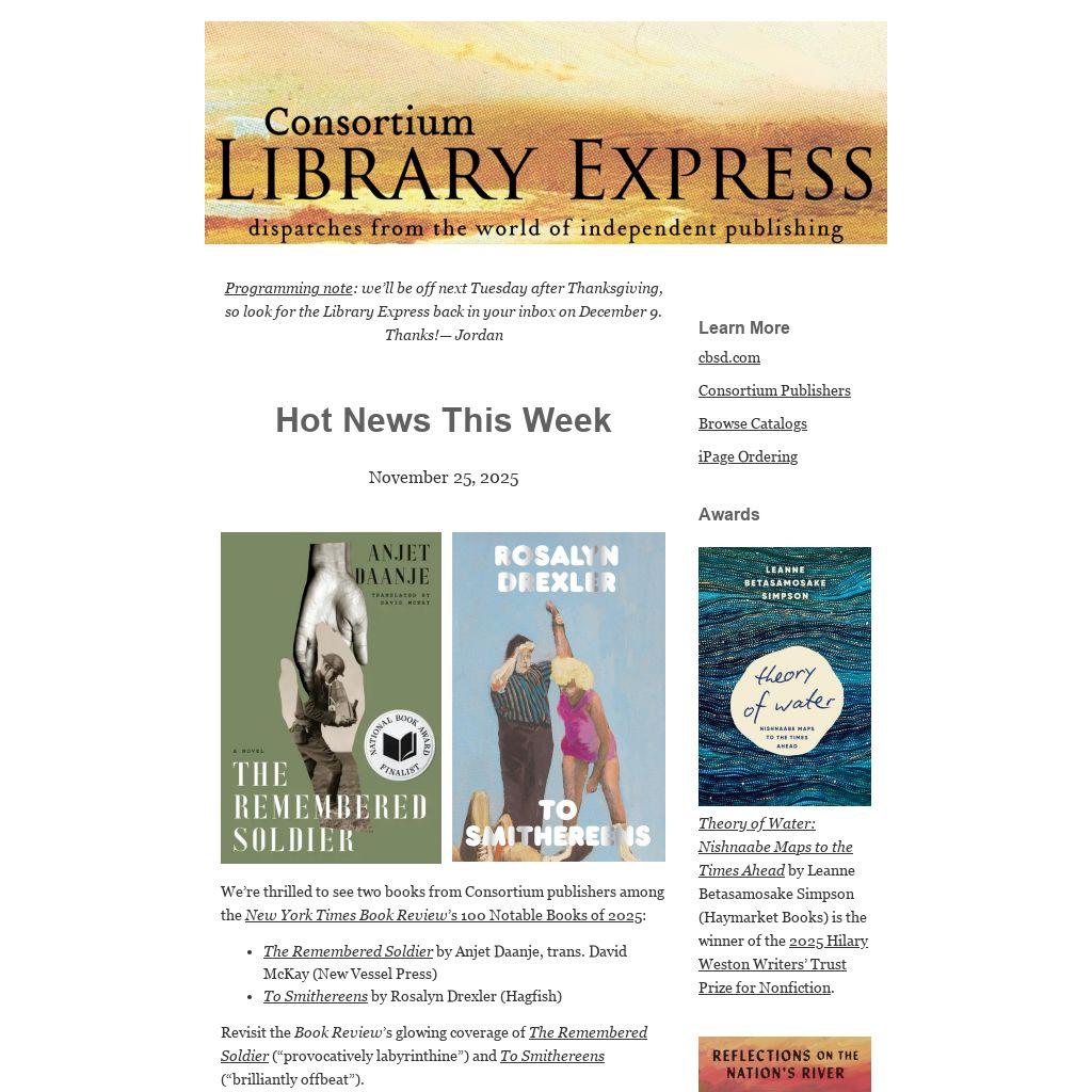 | Programming note: we’ll be off next Tuesday after Thanksgiving, so look for the Library Express back in your inbox on December 9. Thanks!— Jordan