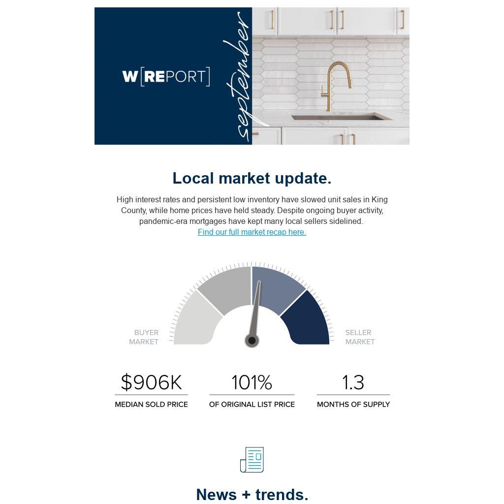 High interest rates and persistent low inventory have slowed unit sales in King County, while home prices have held steady. Despite ongoing buyer activity, pandemic-era mortgages have kept many local sellers sidelined. Find our full market recap here.