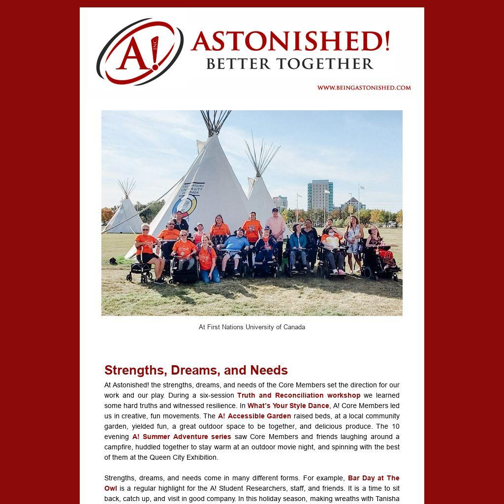 We gratefully acknowledge financial support from City of Regina 2022 Social Development Grant – Annual Activity for the ongoing work of Astonished! Social Club