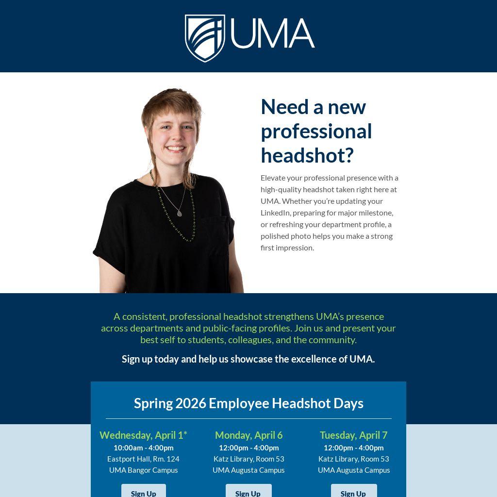 *A minimum of 5 participants is required for Employee Headshot Day to take place on UMA’s Bangor campus.