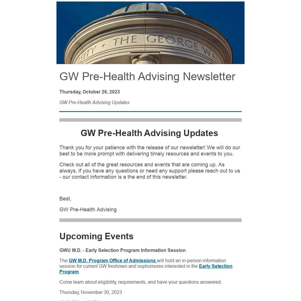 GW Pre-Health Advising Updates