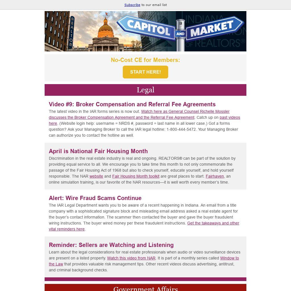 Add news@indianarealtors.com to your address book and be sure to let your local association know when you change email addresses (that’s where we get your contact). Also, don’t hesitate to share your ideas for content. Thank you for reading and thank you for your membership.