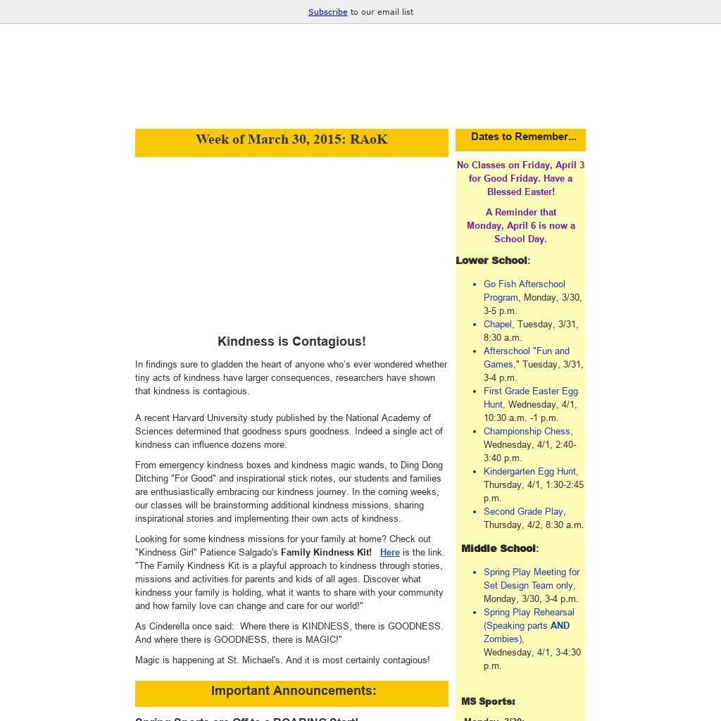 | No Classes on Friday, April 3 for Good Friday. Have a Blessed Easter! A Reminder that Monday, April 6 is now a School Day.