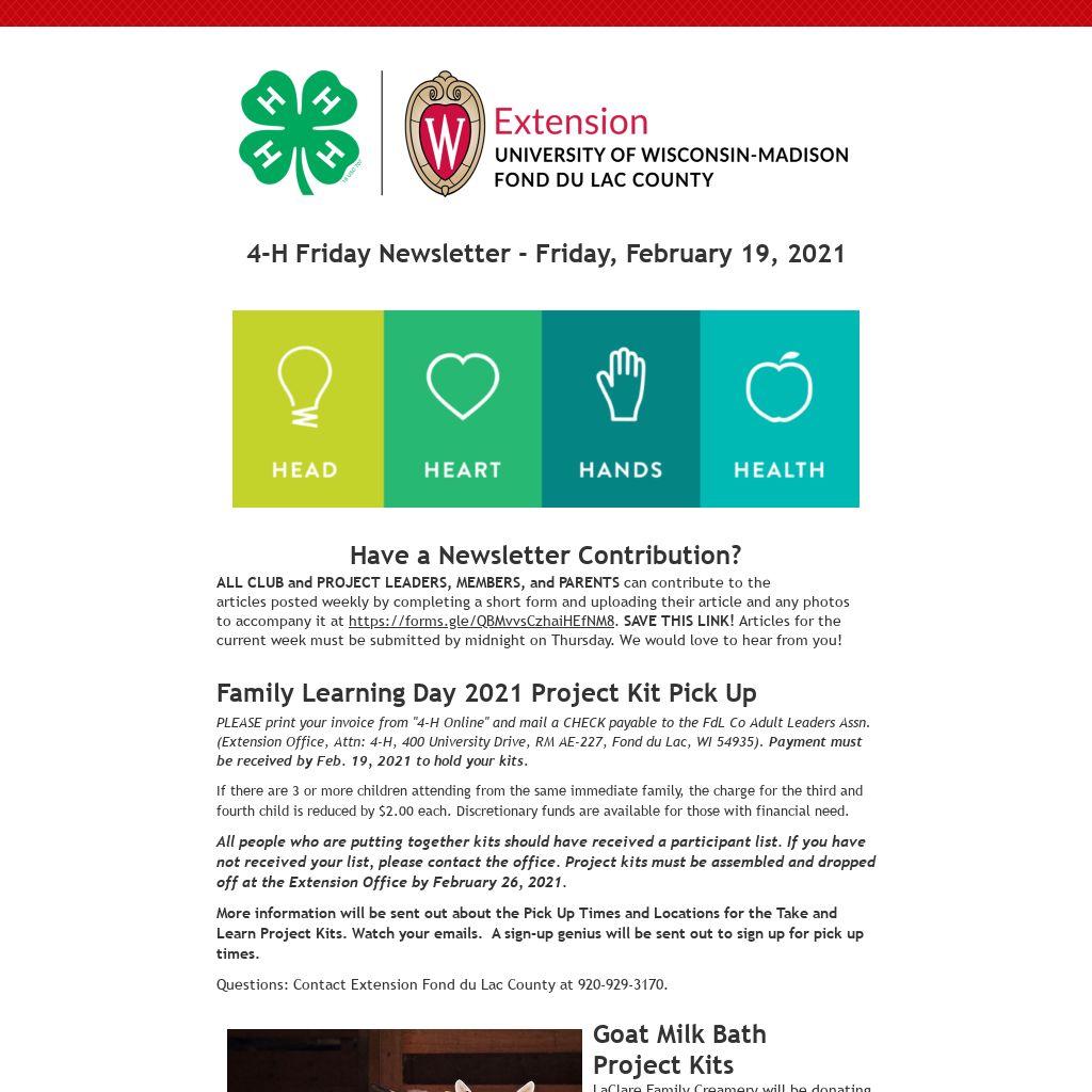 Deadlines:- WI 4-H Pen Pal Exchange - Deadline Feb. 20