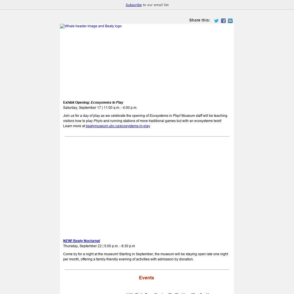 Join us for a day of play as we celebrate the opening of Ecosystems in Play! Museum staff will be teaching visitors how to play Phylo and running stations of more traditional games but with an ecosystems twist! Learn more at beatymuseum.ubc.ca/ecosystems-in-play
