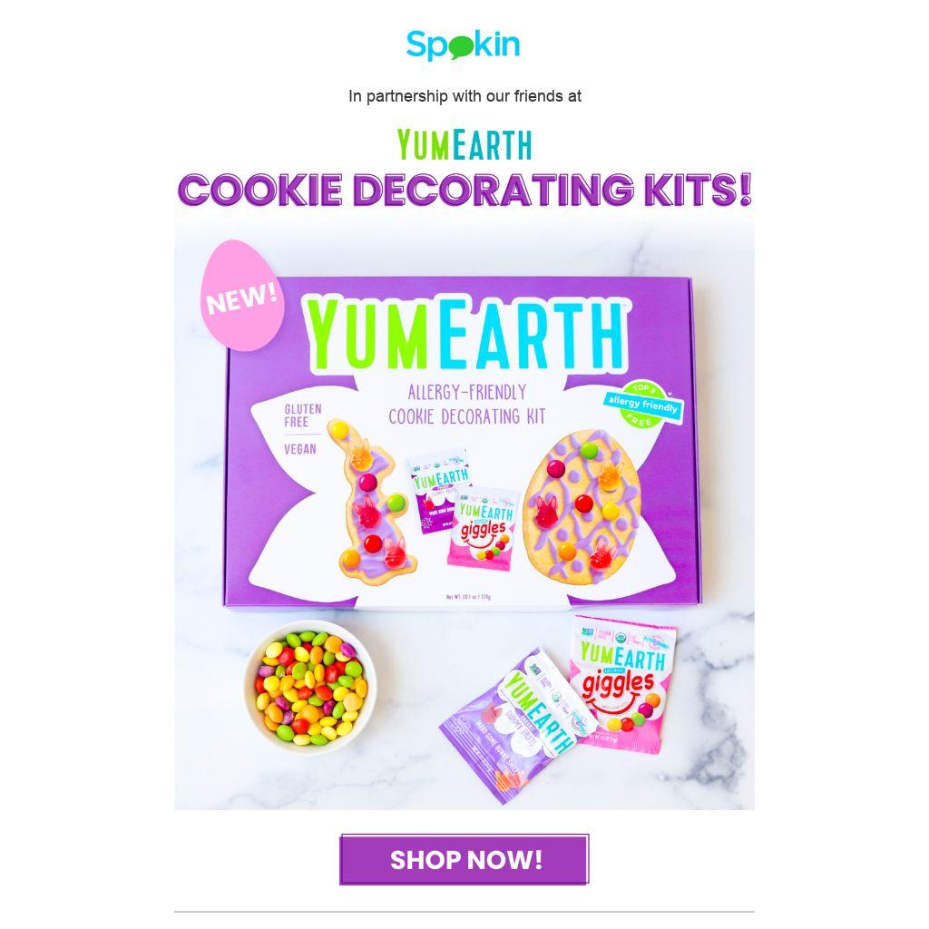 NEW from YumEarth: Allergy-Friendly Cookie Decorating Kits available in a limited supply! Start a new Easter or spring tradition with YumEarth's top 9 free and gluten-free kits. Each kit comes with 2 cookies, icing, and YumEarth candy to decorate with!