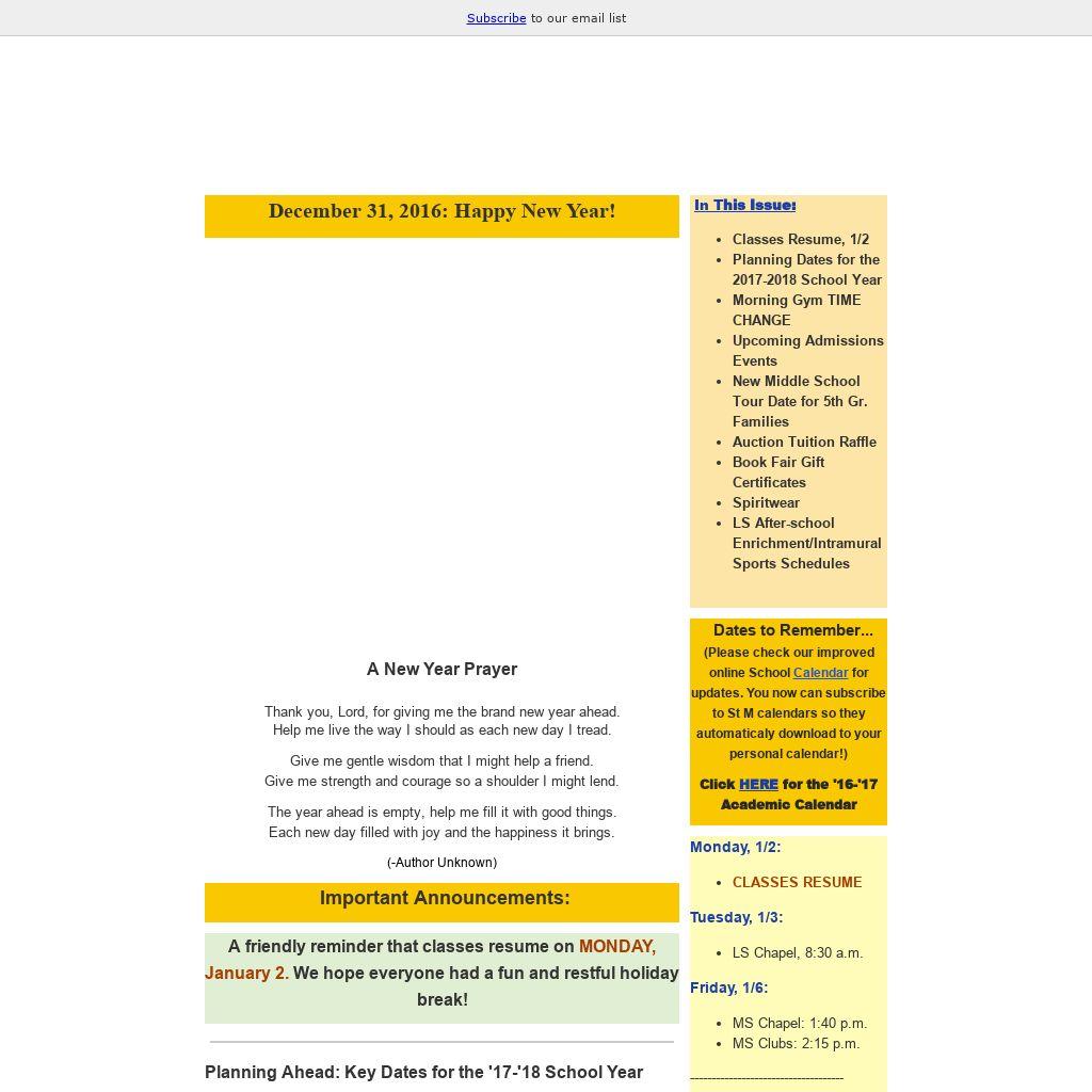 | Dates to Remember...(Please check our improved online School Calendar for updates. You now can subscribe to St M calendars so they automaticaly download to your personal calendar!) Click HERE for the '16-'17 Academic Calendar