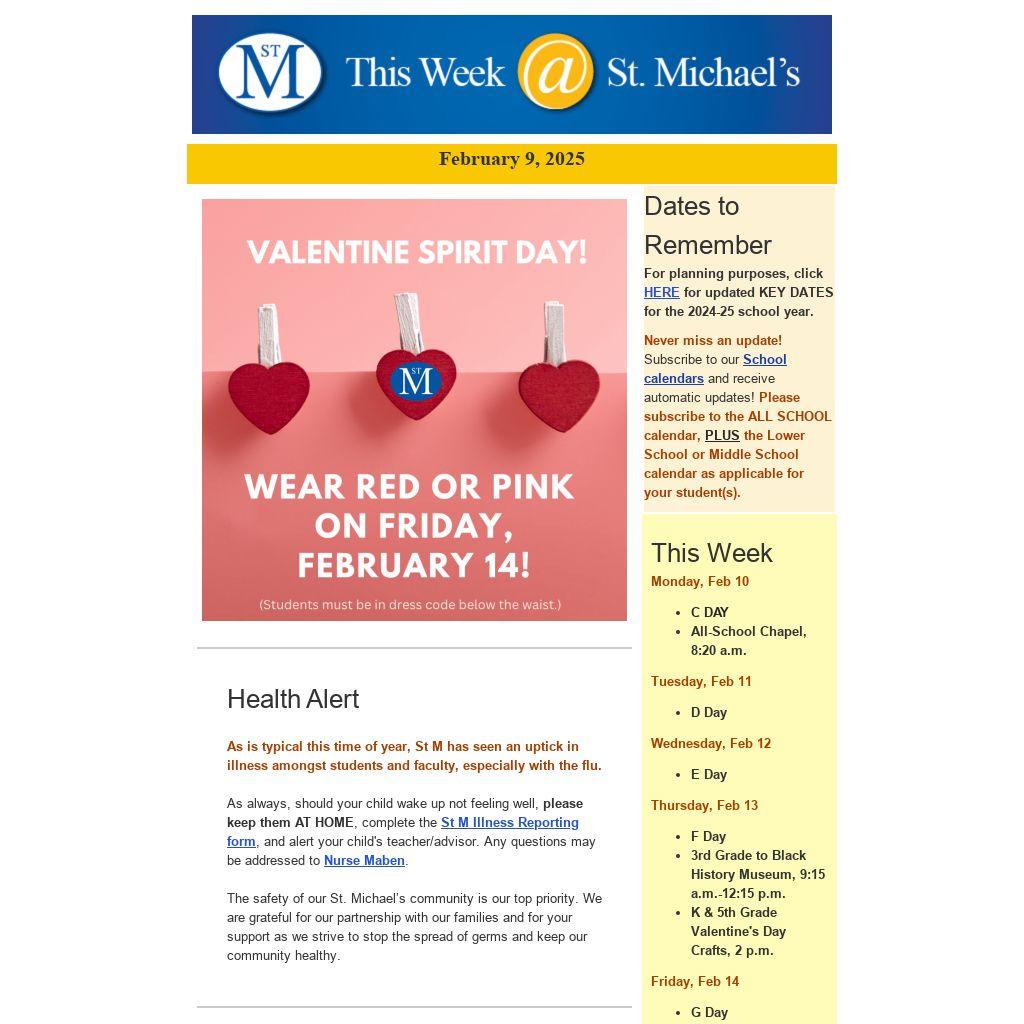 For the health and safety of all of our students, faculty, and staff, thank you for informing St. Michael’s if your child is ill and/or has a suspected contagious illness.
