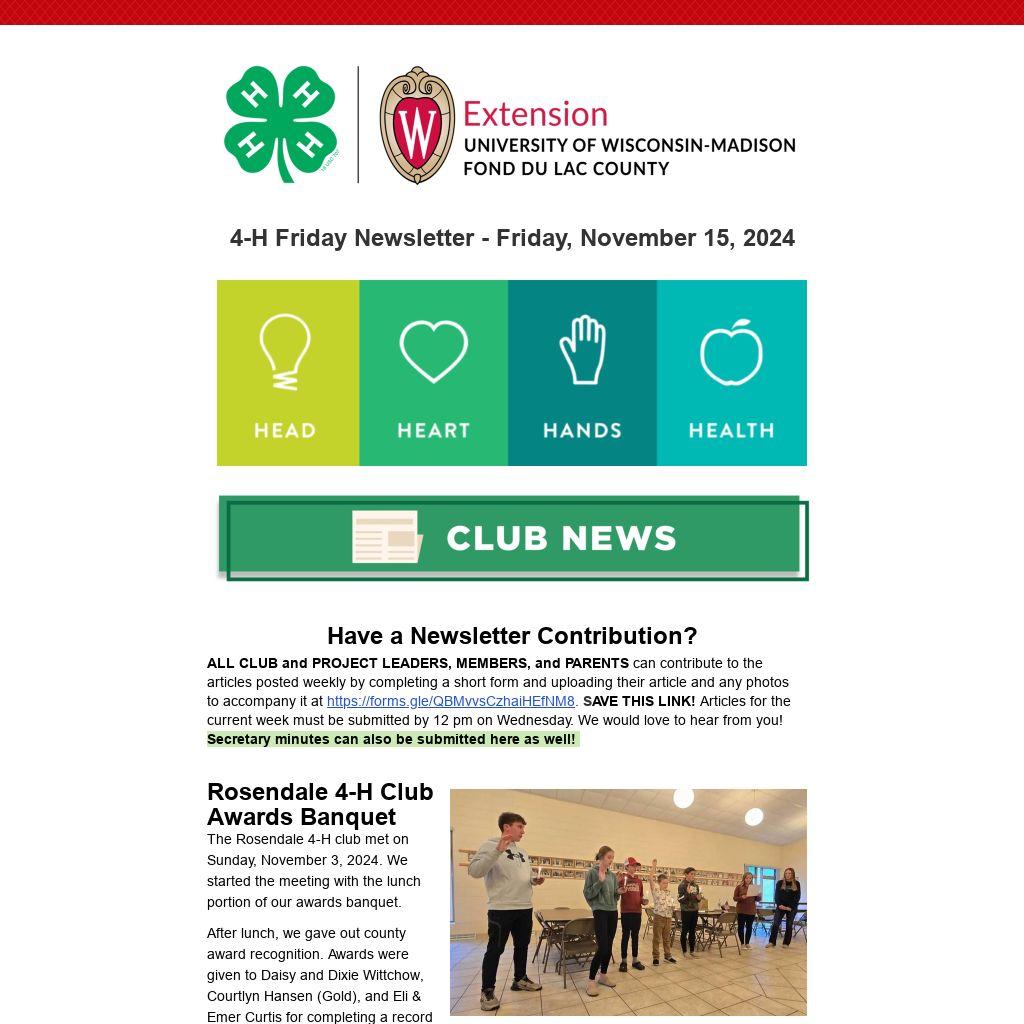The Rosendale 4-H club met on Sunday, November 3, 2024. We started the meeting with the lunch portion of our awards banquet.