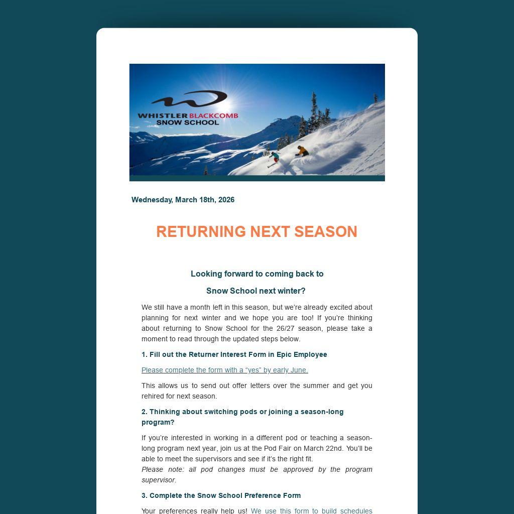 This allows us to send out offer letters over the summer and get you rehired for next season.