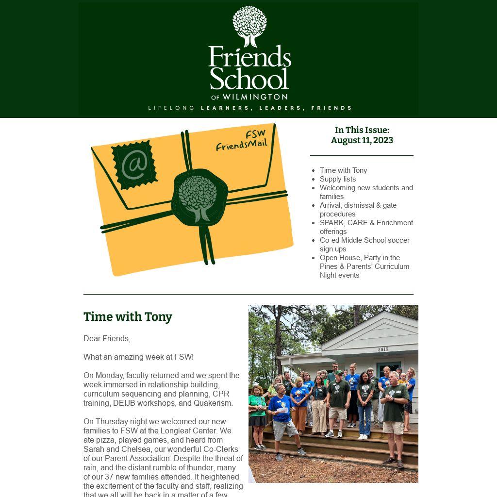 As we welcome the beginning of a new school year, we want to extend a very special welcome to our new students and their families joining the FSW community. We gathered yesterday at Longleaf Center for a joyous (and yes, very muggy) pizza party. For both new and returning families, thank you for entrusting us with the care and education of your children. It is our deepest honor to guide them in their learning journey.