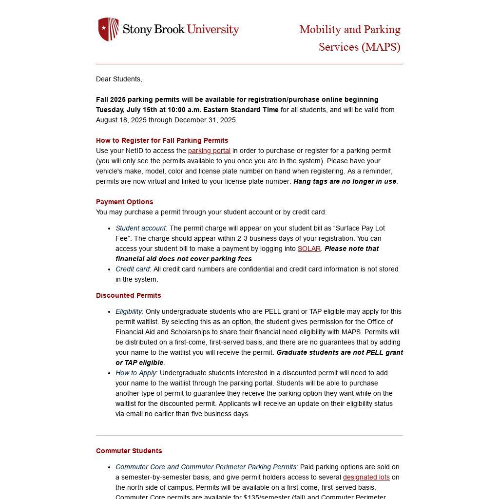 - Please remember that all vehicles that park on campus must have a valid parking permit.