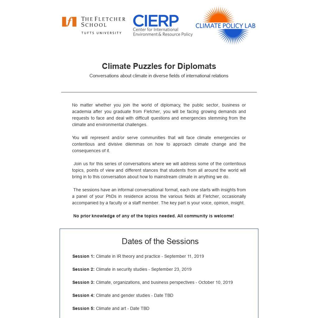 No matter whether you join the world of diplomacy, the public sector, business or academia after you graduate from Fletcher, you will be facing growing demands and requests to face and deal with difficult questions and emergencies stemming from the climate and environmental challenges.