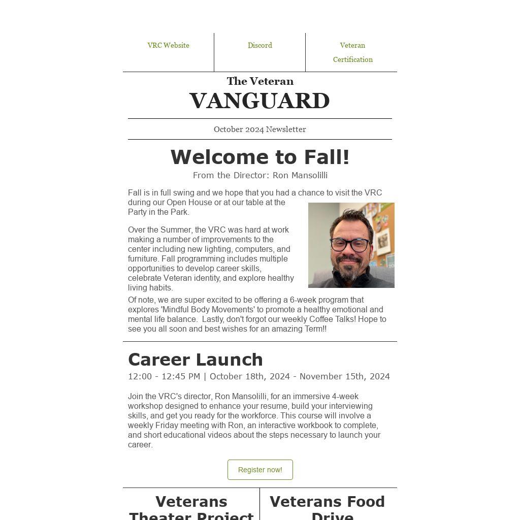 Over the Summer, the VRC was hard at work making a number of improvements to the center including new lighting, computers, and furniture. Fall programming includes multiple opportunities to develop career skills, celebrate Veteran identity, and explore healthy living habits.