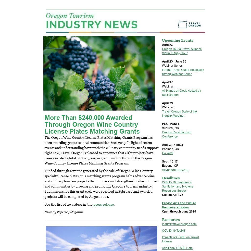 On Wednesday, April 29 at 1:30 p.m., join Travel Oregon CEO, Todd Davidson, along with Alana Hughson, Managing Director of Oregon Destination Association, and Jason Brandt, President & CEO, Oregon Restaurant & Lodging Association, for an in-depth discussion to inform the industry of our efforts to address the needs of travelers, partners, stakeholders and residents in a time when up-to-date information is crucial. Takeaways include a look at overall economic outlook, recovery strategies and opportunities that will guide us in preparing for the next phase of this crisis.