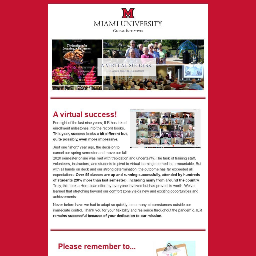 Never before have we had to adapt so quickly to so many circumstances outside our immediate control. Thank you for your flexibility and resilience throughout the pandemic. ILR remains successful because of your dedication to our mission.