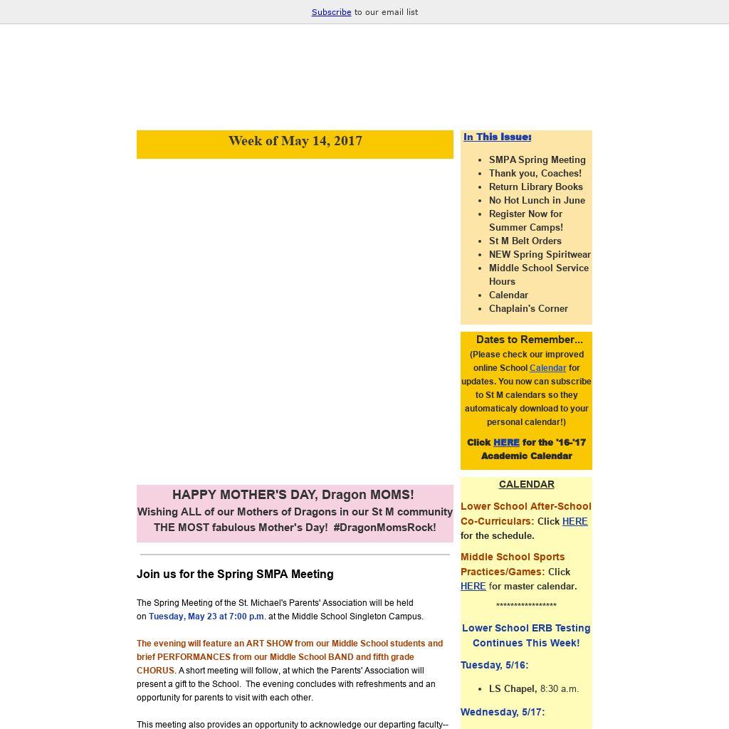 | Dates to Remember...(Please check our improved online School Calendar for updates. You now can subscribe to St M calendars so they automaticaly download to your personal calendar!) Click HERE for the '16-'17 Academic Calendar