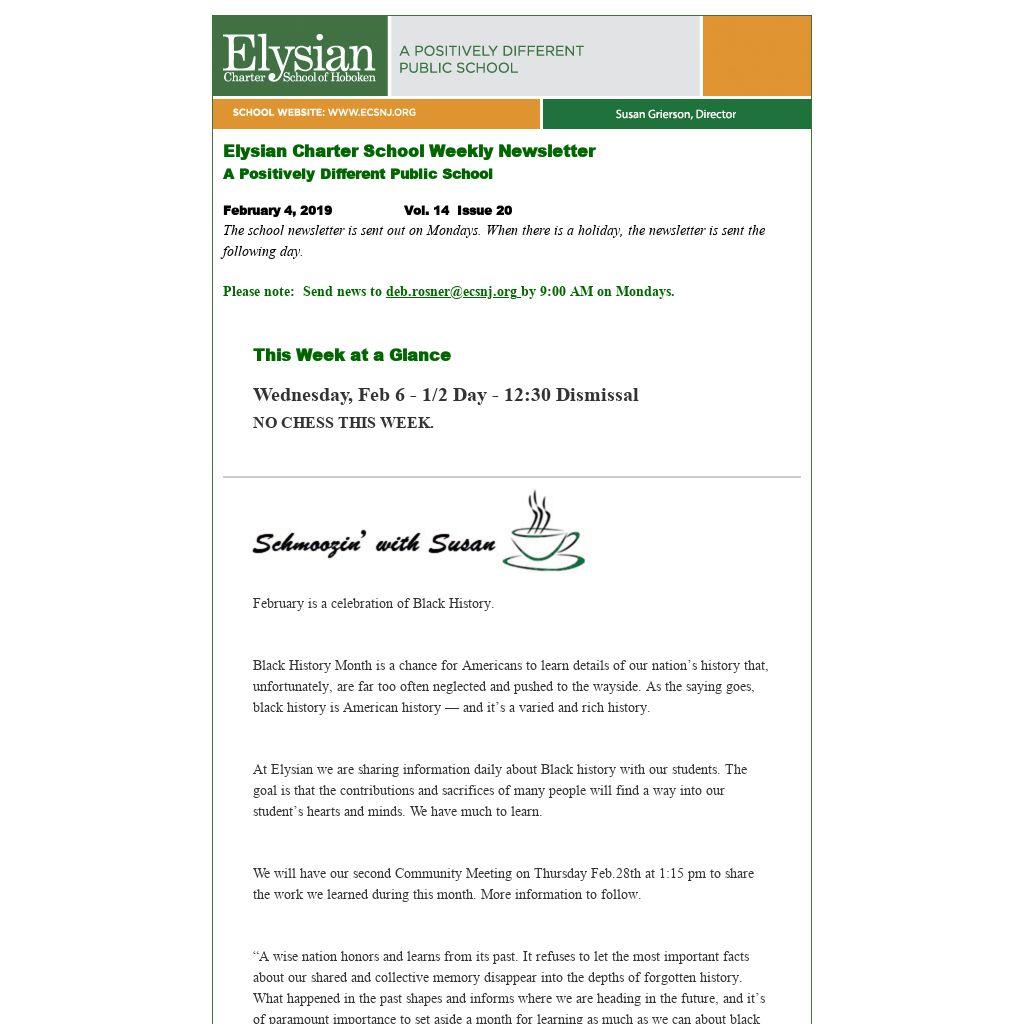 Elysian Charter School Weekly Newsletter