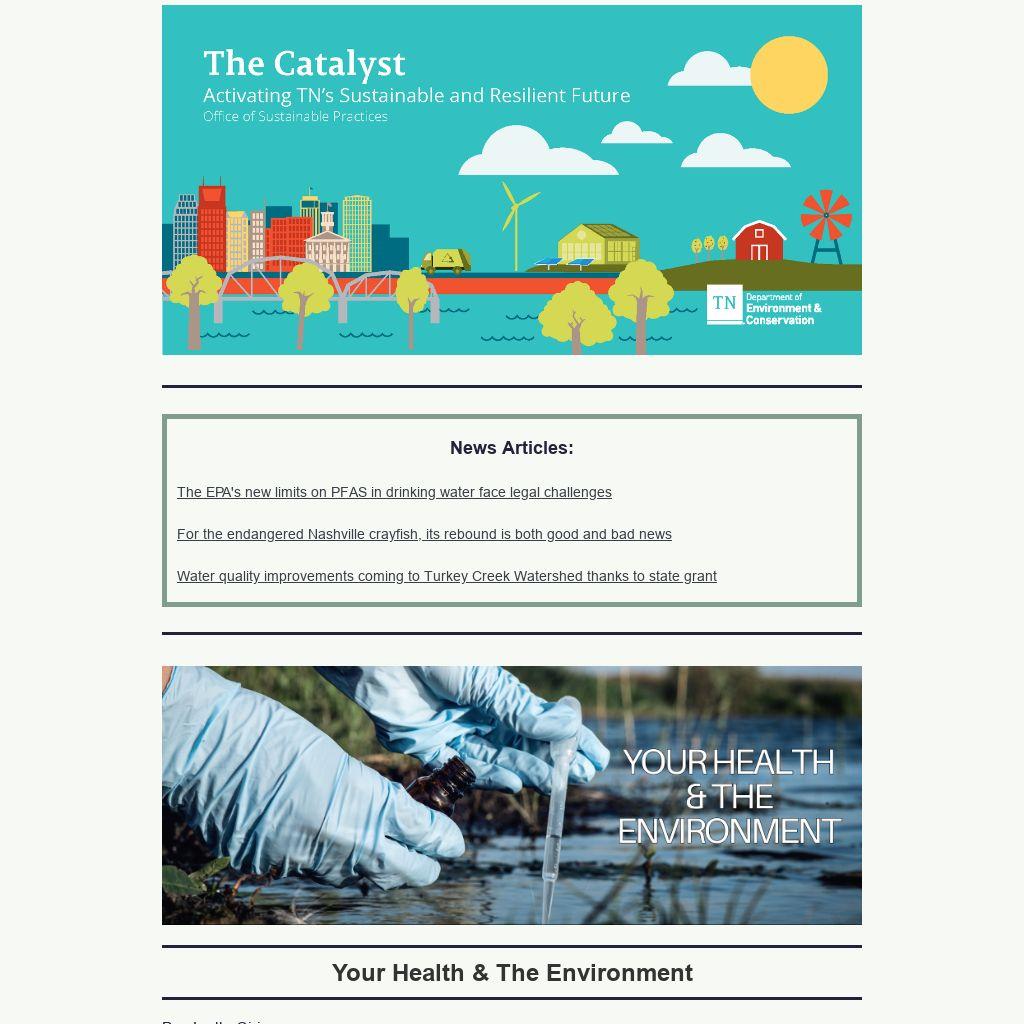 Here in Tennessee, the Tennessee Department of Environment and Conservation’s (TDEC) mission is to enhance the quality of life for citizens of Tennessee and to be stewards of our natural environment. These are just a few ongoing efforts to protect and improve the quality of Tennessee’s environment for the health of our communities: