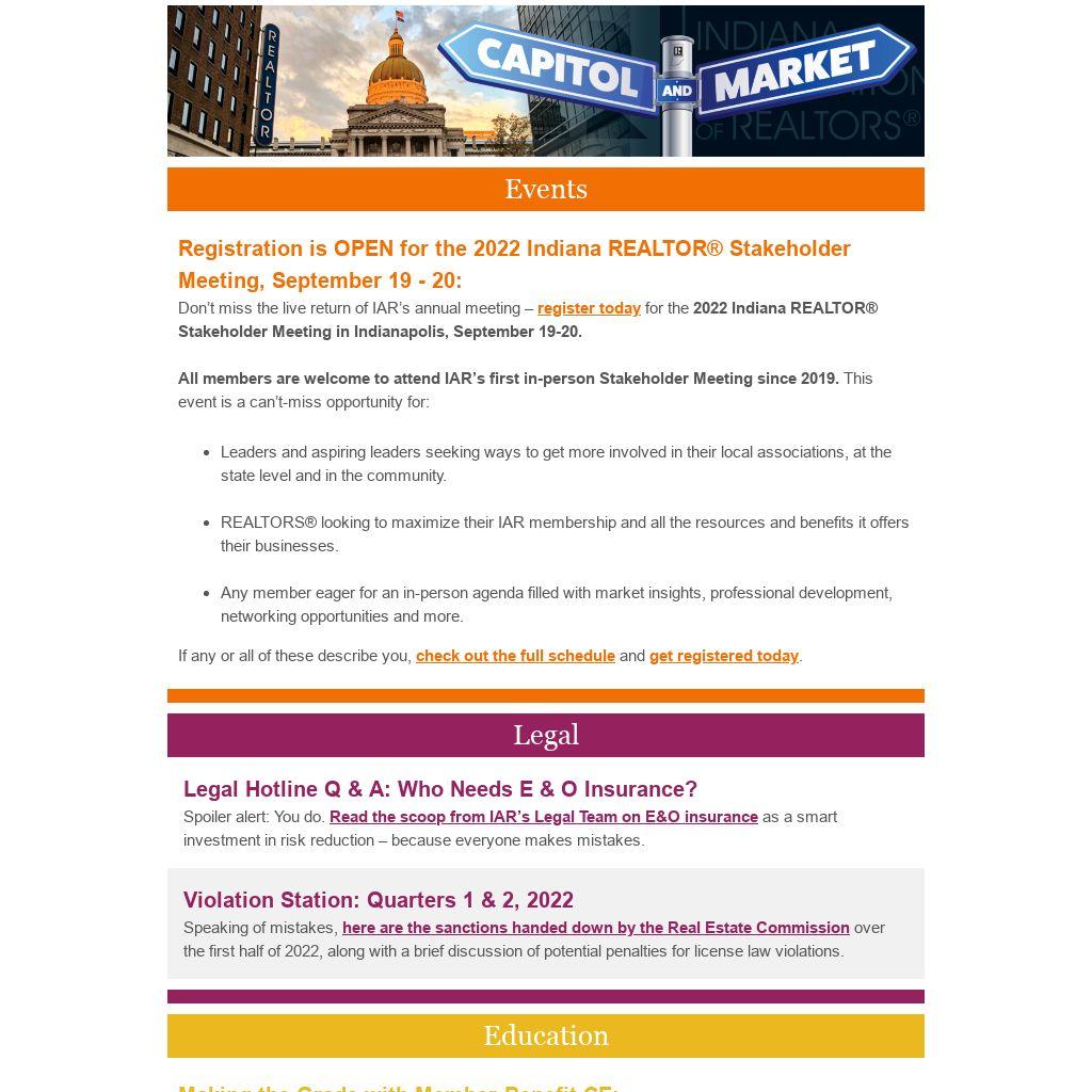 Don’t miss the live return of IAR’s annual meeting – register today for the 2022 Indiana REALTOR® Stakeholder Meeting in Indianapolis, September 19-20.
