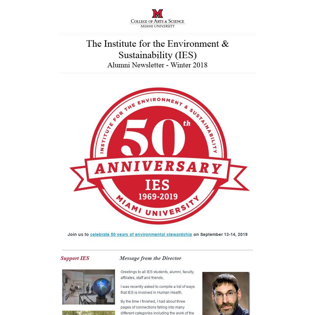 2019 brings many other exciting events, particularly with the IES 50th anniversary! IES was founded in 1969 and we will be celebrating 50 years of environmental education, research, projects and training of over 800 environmental professionals. We are in the midst of planning for this auspicious occasion and we’ll be sending out many more details.
