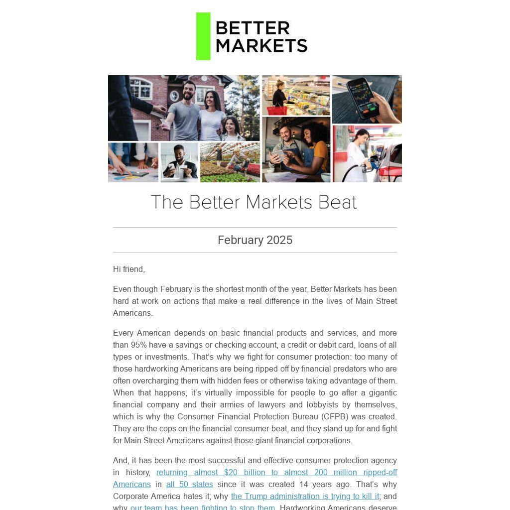 Even though February is the shortest month of the year, Better Markets has been hard at work on actions that make a real difference in the lives of Main Street Americans.