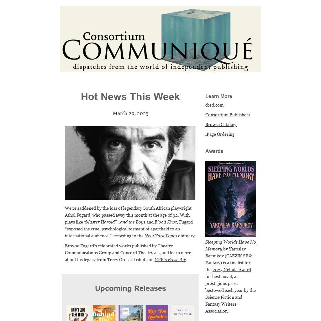 | We’re saddened by the loss of legendary South African playwright Athol Fugard, who passed away this month at the age of 92. With plays like “Master Harold”...and the Boys and Blood Knot, Fugard “exposed the cruel psychological torment of apartheid to an international audience,” according to the New York Times obituary.