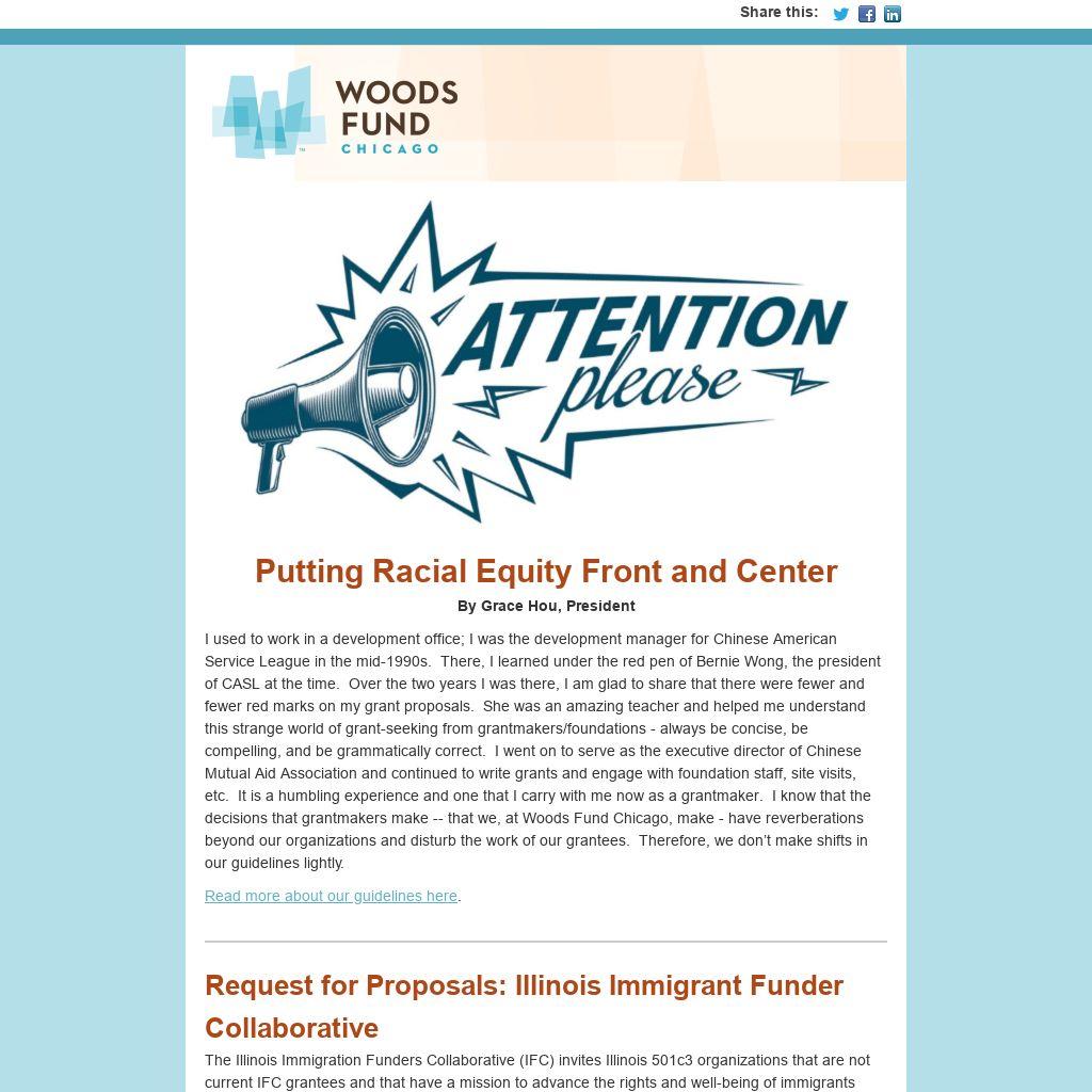 I used to work in a development office; I was the development manager for Chinese American Service League in the mid-1990s. There, I learned under the red pen of Bernie Wong, the president of CASL at the time. Over the two years I was there, I am glad to share that there were fewer and fewer red marks on my grant proposals. She was an amazing teacher and helped me understand this strange world of grant-seeking from grantmakers/foundations - always be concise, be compelling, and be grammatically correct. I went on to serve as the executive director of Chinese Mutual Aid Association and continued to write grants and engage with foundation staff, site visits, etc. It is a humbling experience and one that I carry with me now as a grantmaker. I know that the decisions that grantmakers make -- that we, at Woods Fund Chicago, make - have reverberations beyond our organizations and disturb the work of our grantees. Therefore, we don’t make shifts in our guidelines lightly.