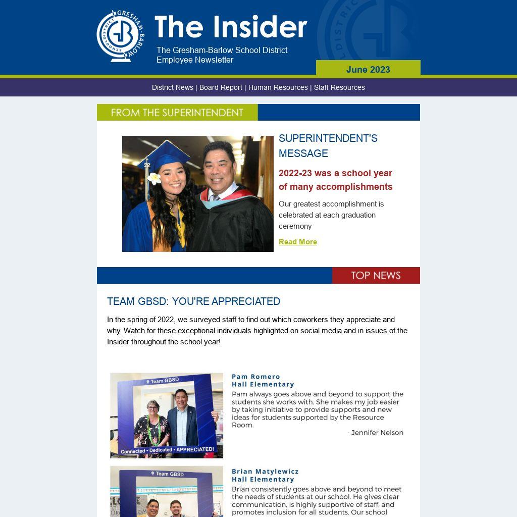 Congratulations goes out to all of our 2023 retirees. We honored our retirees at our “New Beginnings” celebration which recognized retirees and educators who have moved from probationary to contract status! Thank you, retirees, for your many years of service to our entire community. A list of all retirees will soon be posted on the GBSD Website.