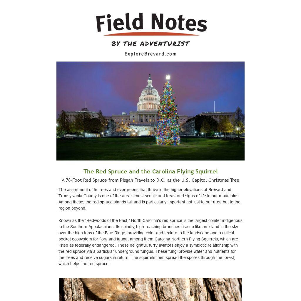 This year, as we enter the 2022 holiday season, a red spruce from Pisgah National Forest has been selected as the US Capitol Christmas Tree. This 78-foot-tall giant named Ruby will make its way from North Carolina through Virginia and on to Washington, D.C., starting in early November with stops throughout the state, including at the Pisgah Ranger Station and Visitor Center on Monday, November 7.