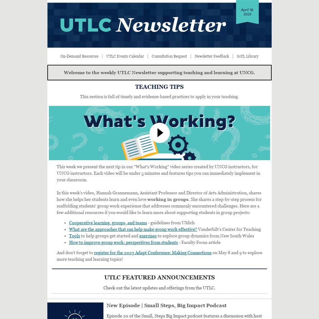 Welcome to the weekly UTLC Newsletter supporting teaching and learning at UNCG.