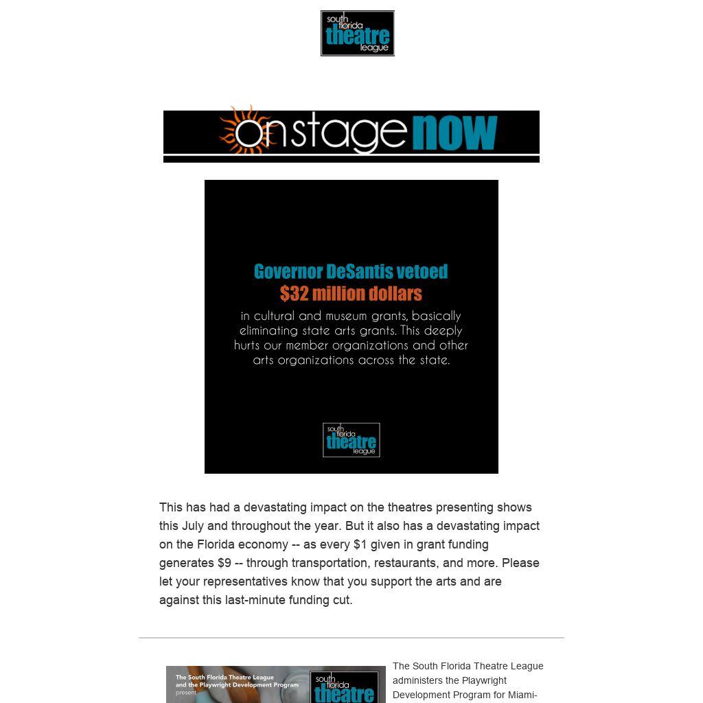 The South Florida Theatre League administers the Playwright Development Program for Miami-Dade County Department of Cultural Affairs, which is in place to help local playwrights develop new work.