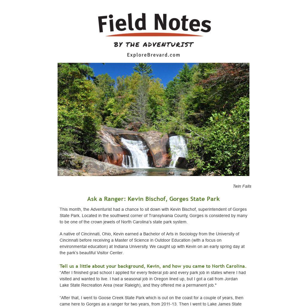 This month, the Adventurist had a chance to sit down with Kevin Bischof, superintendent of Gorges State Park. Located in the southwest corner of Transylvania County, Gorges is considered by many to be one of the crown jewels of North Carolina’s state park system.