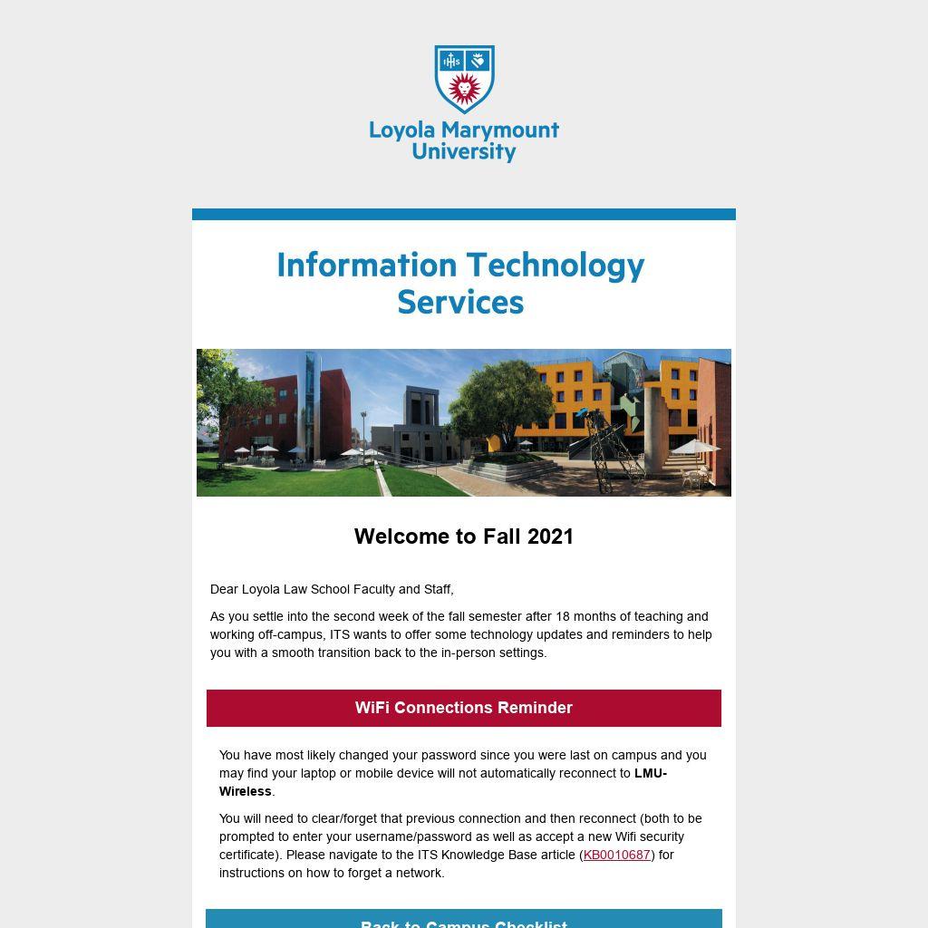 As you settle into the second week of the fall semester after 18 months of teaching and working off-campus, ITS wants to offer some technology updates and reminders to help you with a smooth transition back to the in-person settings.