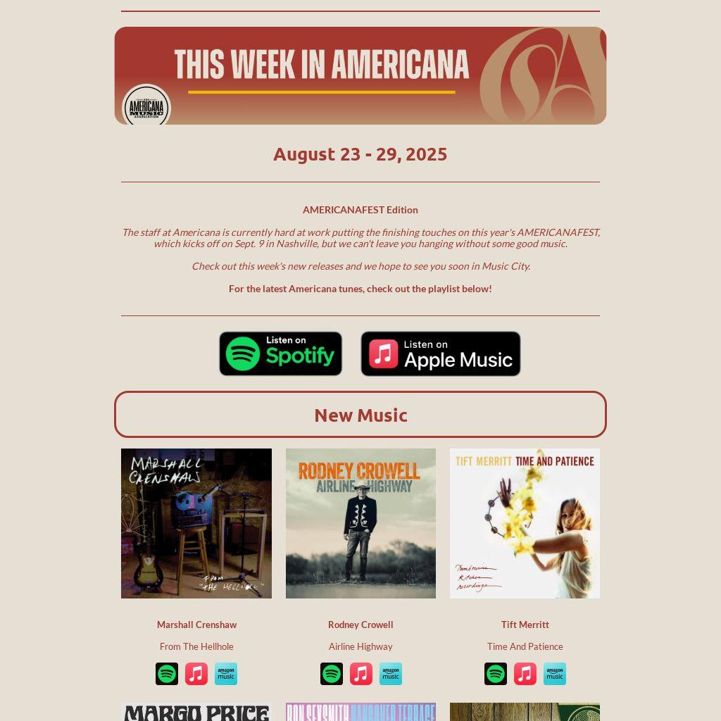 The staff at Americana is currently hard at work putting the finishing touches on this year's AMERICANAFEST, which kicks off on Sept. 9 in Nashville, but we can't leave you hanging without some good music.