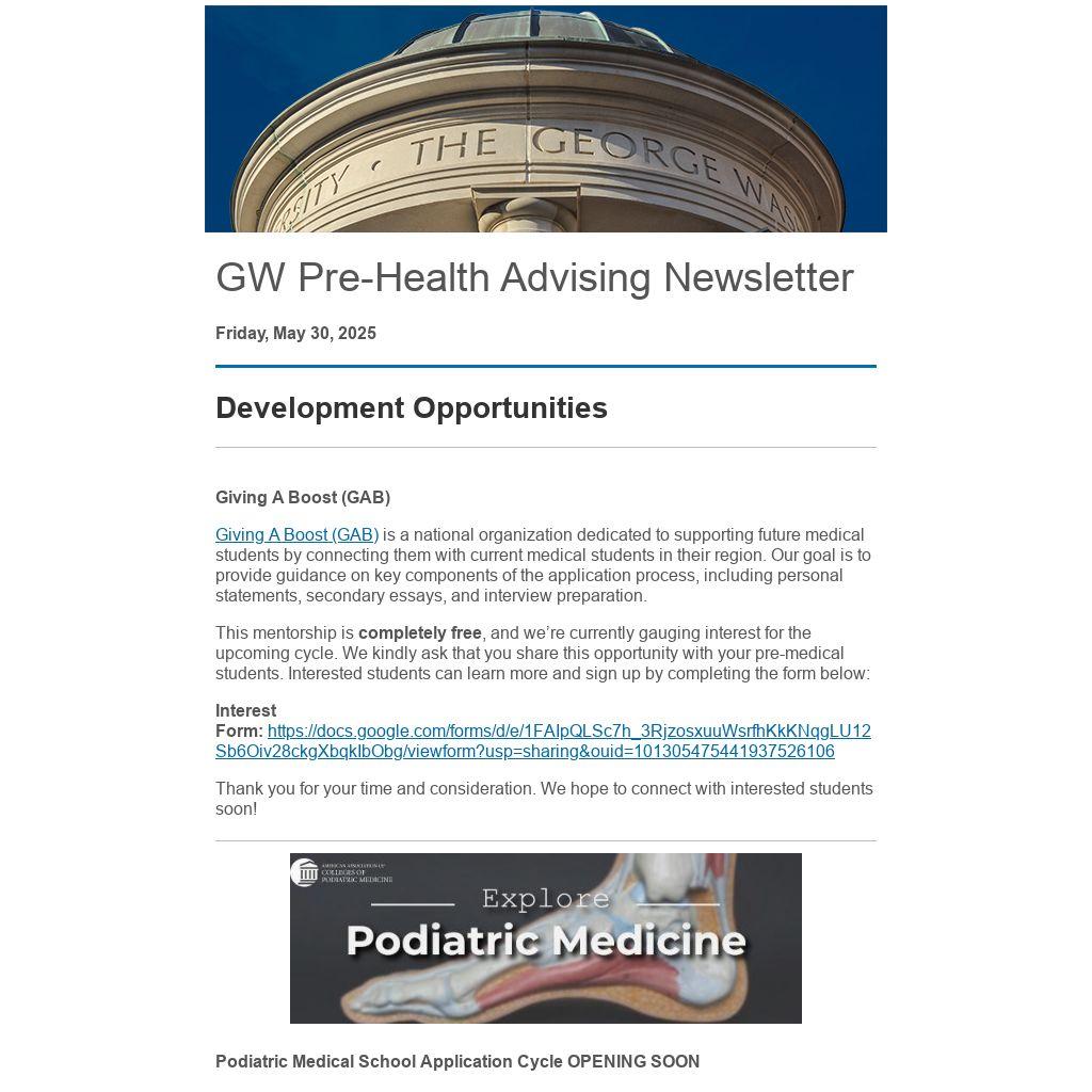 GW Pre-Health Advising Newsletter |