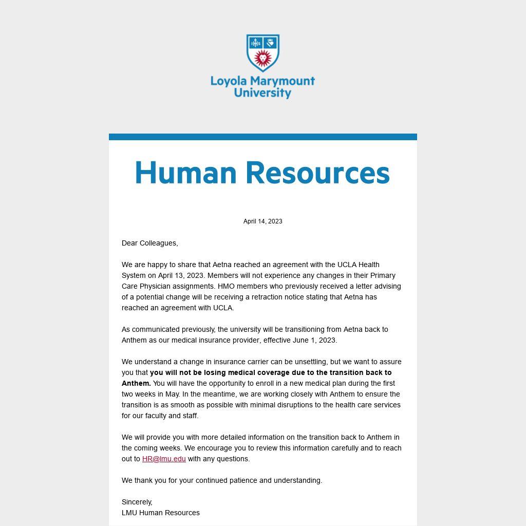 Sincerely, LMU Human Resources