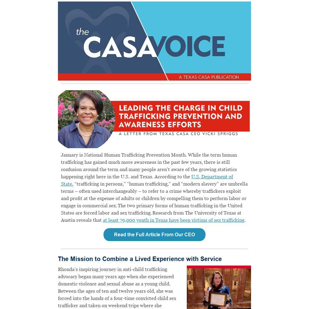 January is National Human Trafficking Prevention Month. While the term human trafficking has gained much more awareness in the past few years, there is still confusion around the term and many people aren’t aware of the growing statistics happening right here in the U.S. and Texas. According to the U.S. Department of State, “trafficking in persons,” “human trafficking,” and “modern slavery” are umbrella terms – often used interchangeably – to refer to a crime whereby traffickers exploit and profit at the expense of adults or children by compelling them to perform labor or engage in commercial sex. The two primary forms of human trafficking in the United States are forced labor and sex trafficking. Research from The University of Texas at Austin reveals that at least 79,000 youth in Texas have been victims of sex trafficking.