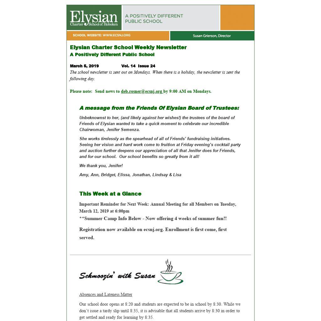 Elysian Charter School Weekly Newsletter