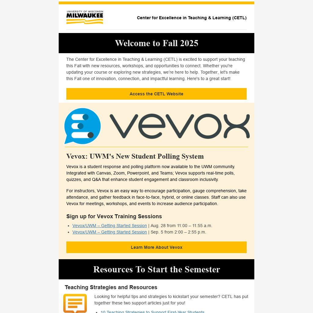 The Center for Excellence in Teaching & Learning (CETL) is excited to support your teaching this Fall with new resources, workshops, and opportunities to connect. Whether you're updating your course or exploring new strategies, we’re here to help. Together, let's make this Fall one of innovation, connection, and impactful learning. Here's to a great start!